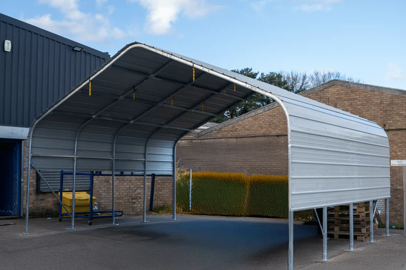 Nuestros refugios para vehículos agrícolas proporcionan protección fiable para coches, furgonetas, motocicletas y vehículos comerciales. Diseñados para uso permanente tanto en entornos privados como comerciales, su estructura abierta combina un marco de acero estable con un revestimiento de techo duradero. Esto asegura una protección confiable incluso en condiciones climáticas adversas, permitiendo un acceso conveniente a los vehículos.