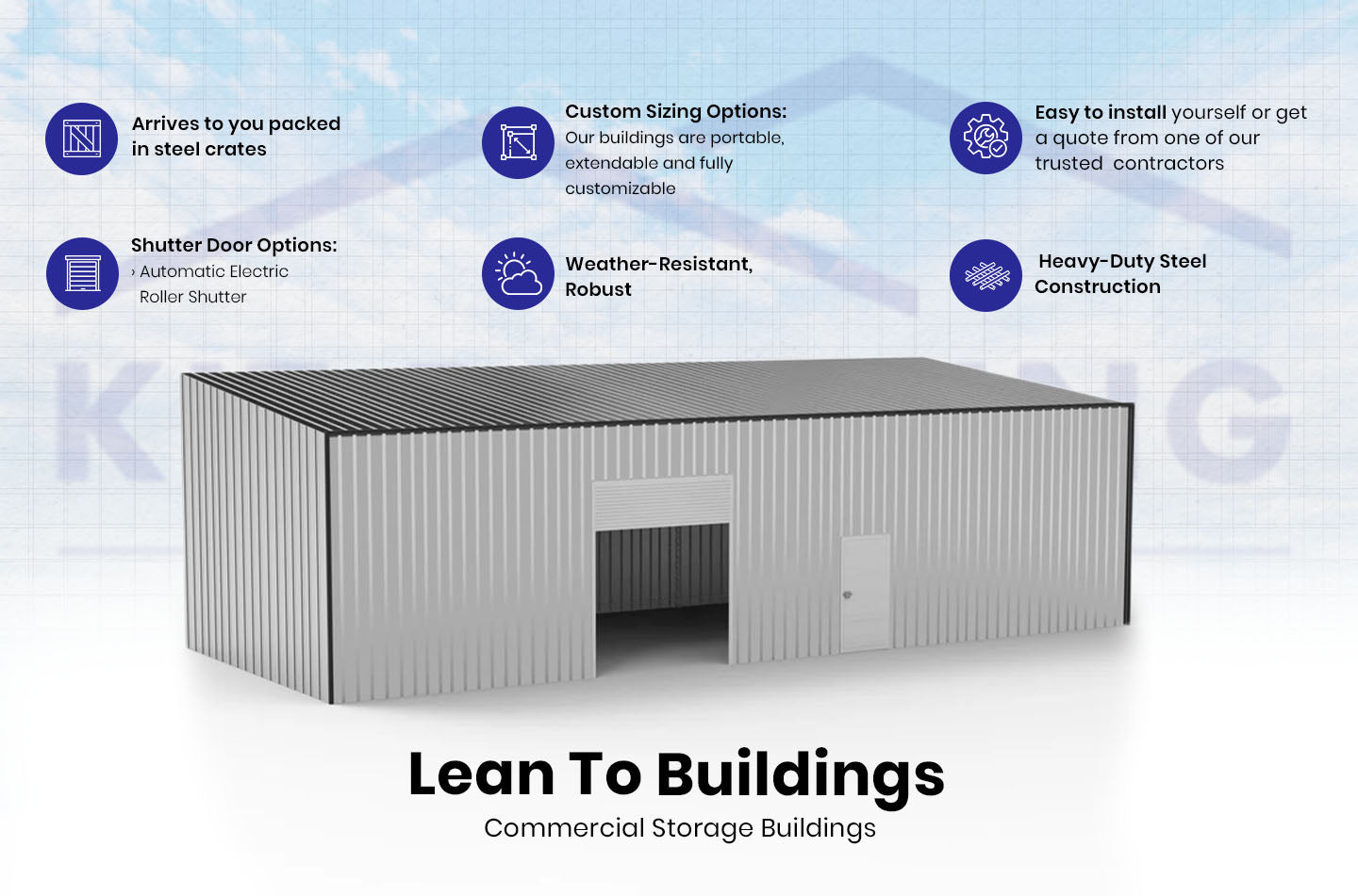 Nuestros kits de cobertizos tipo lean to ofrecen una solución de almacenamiento y refugio rentable, perfecta para granjas, almacenes, talleres y propiedades residenciales. Con ensamblaje rápido y sencillo, puedes tener tu lean to de metal instalado en poco tiempo.